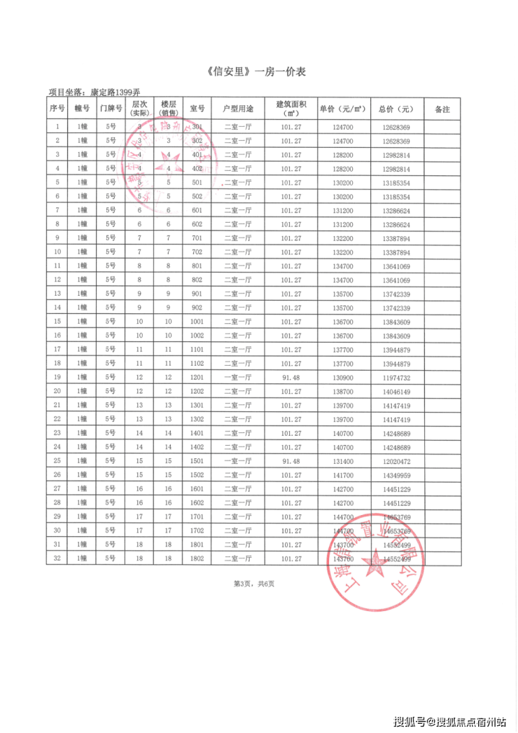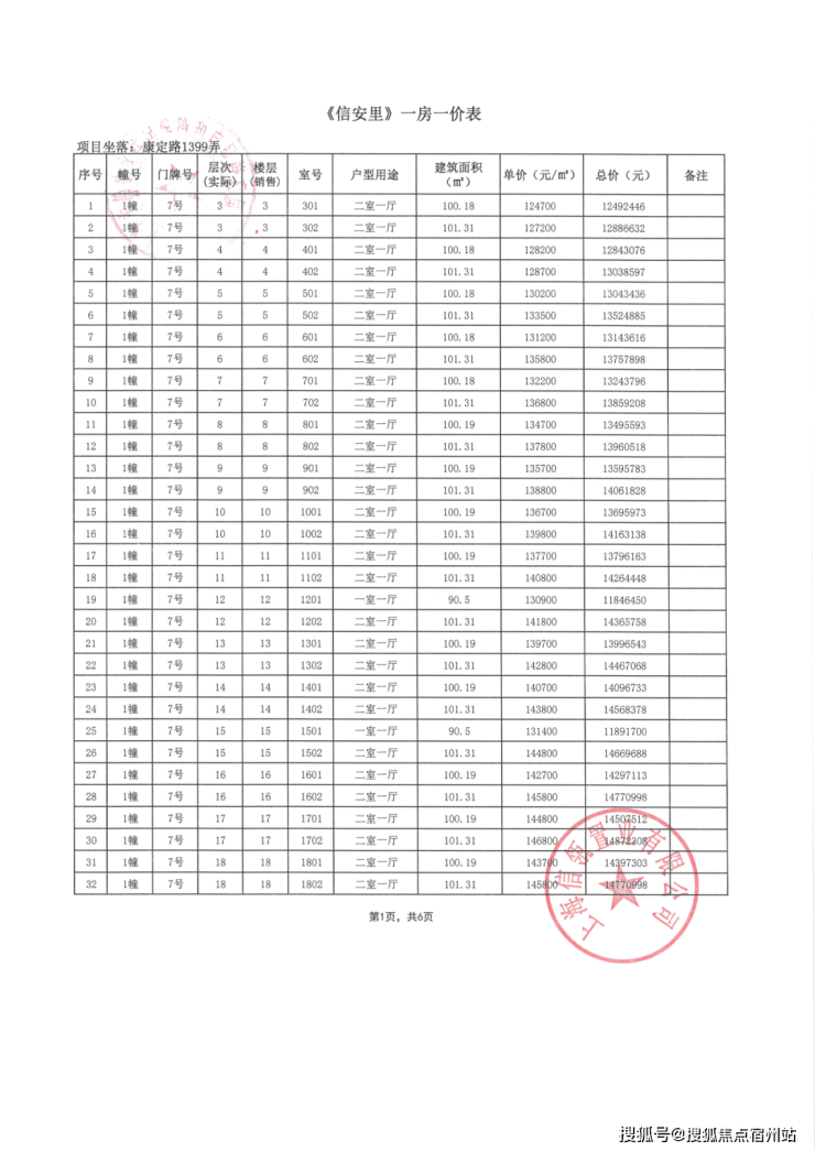 一房一价表独家首发: