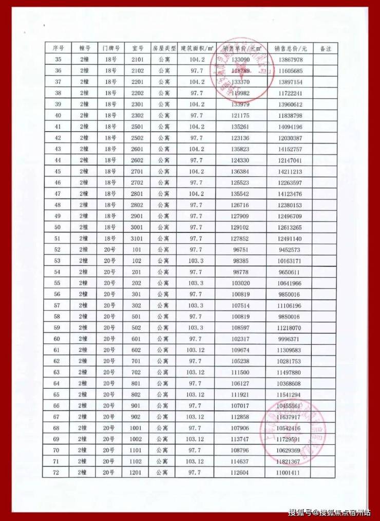 一房一价表如下: