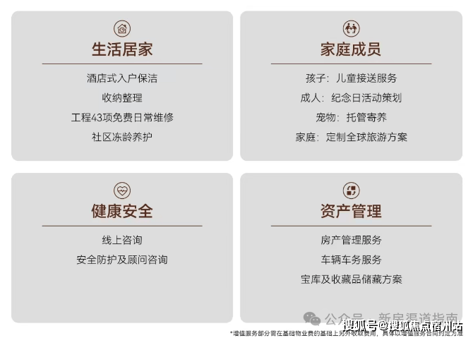 同时引入源自世界奢华酒店的“无边际服务”,依据280余项标准化服务细则,提供日常居家服务、健康安全、资产托管等增值服务,如入户保洁、儿童校车点接送、宠物托管、工程43项免费日常维修等,打造“冻龄”社区。