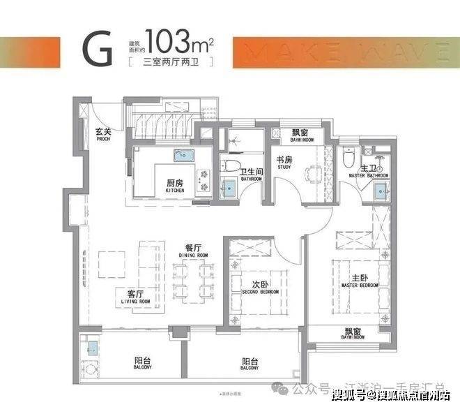 值得一提的是,该户型做到了“南向双阳台+南北双飘窗”的设计,在实用性上超越了市场上许多同面积段的产品。