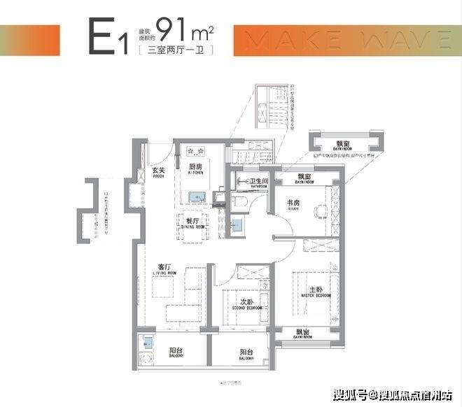 “南向双阳台+南北双飘窗”,构筑真3房户型!