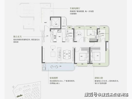 126㎡ 4 室 2 厅 2 卫 :四开间朝南,超大面宽,客餐厅连通南向阳台,视野开阔;主卧套房奢华设计,次卧均带飘窗,功能性与舒适度兼具,总价约 800 万起。