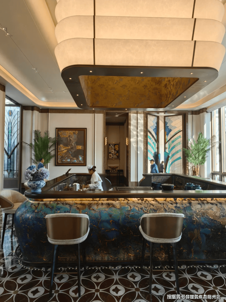 值得一提的是,这个彩绘玻璃穹顶并非单纯的装饰,而是与售楼处的整体设计融为一体,搭配室内的艺术拱门与浮雕墙面,复刻了老上海和平饭店的经典格调,既有复古韵味,又不失现代美感。不管是拍全身照还是半身照,都能很好地融入环境,不会显得突兀,尤其是穿浅色系衣服,与光影、彩绘玻璃相互映衬,出片效果会更好。
