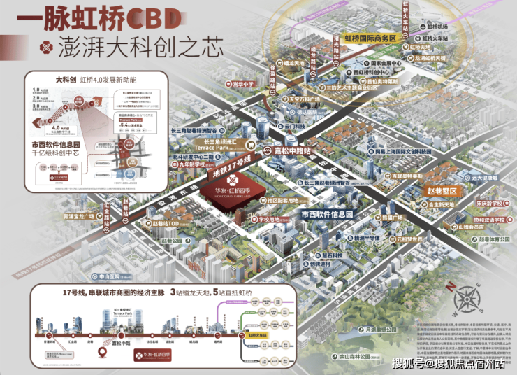青浦区基于”一城两翼,一带三核” 发展战略目标,正着力推进东翼(赵巷商业商务区+西虹桥商务区)发展为国际一流的现代服务业集聚区。并通过17 号地铁线串联起三大核心节点,东起徐泾北斗产业基地,西到金泽华为研发基地,中部核心就是赵巷市西信息软件园。预期,未来这条产业带上,将会有65万高端人口导入