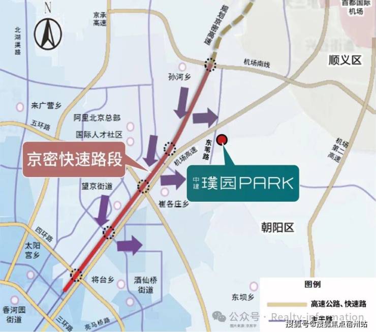 京密高架为双向6车道,完工后可以有效提升交通效率,中建璞园PARK可无缝衔接望京主城,同时也可以为京承高速、机场高速分担车流压力。