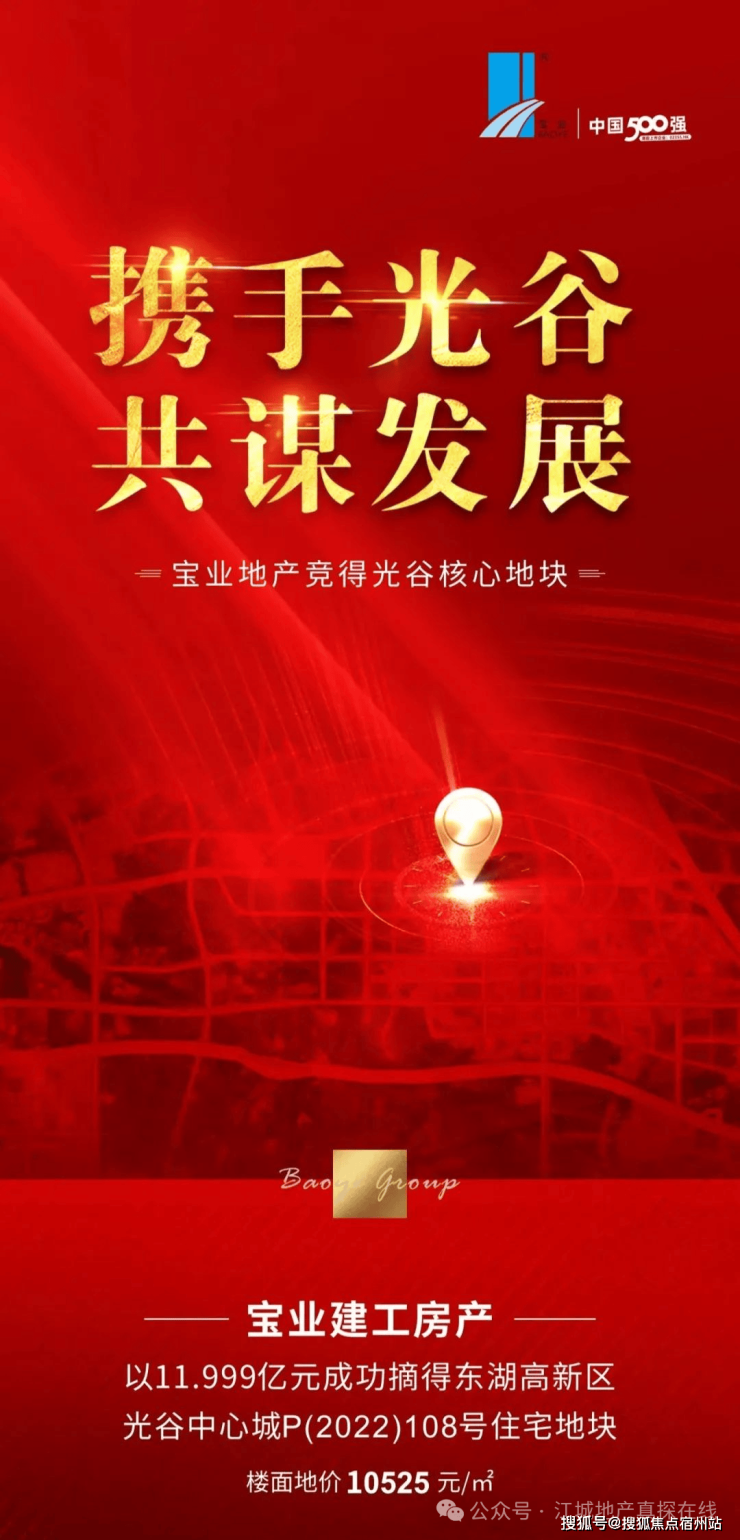 因此,在2022年12月16日的光谷土拍中,P(2022)108这宗 绝版地块,经历了9次竞拍,竞得总价 11.999亿元,溢价率 约3.45%,楼面价 约10525元/㎡,最终幸运的落到了实力强劲的宝业集团手中, 瞬间引爆整个光谷地产圈!