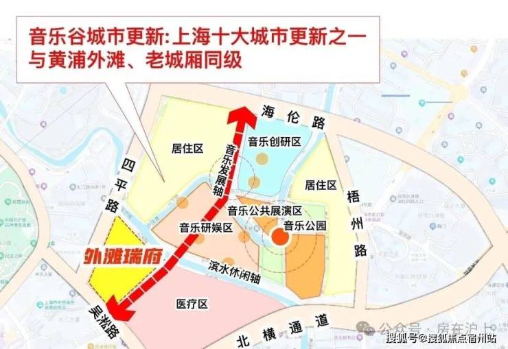「外滩瑞府」隔壁的“音乐谷“城市更新区域,是上海十大城市更新重要单元之一,和黄浦外滩、老城厢同级。未来这里将打造成“东方百老汇”,成为上海最in的文艺潮流地标。