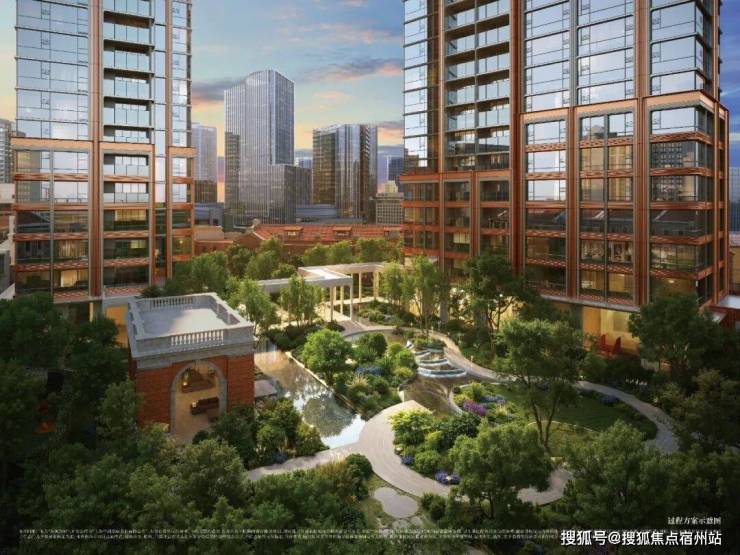 景观方面,「外滩瑞府」通过建筑楼体的偏转,形成了围合式的景观布局。由此,项目做出了约3000㎡尺度宏大,连续贯穿的核心中央花园,并利用楼栋布局与边界形成夹角,自然衍生出6个小型花园组团。