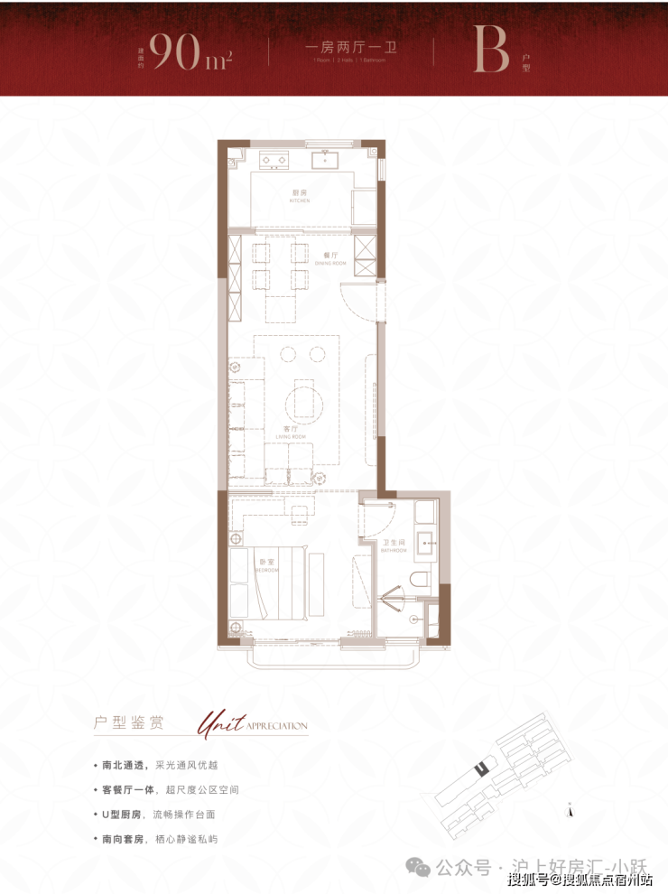 建面约90m²尊享1房户型,在100m²的基础上,进一步降低总价门槛的同时,也带来了设计上针对实用性的小巧思。