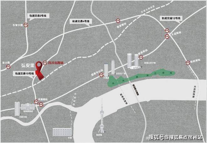 12号线横向通达都心,两站北外滩、四站苏河湾、七站南京西路,覆盖北外滩来福士、太阳宫、白玉兰广场、环贸IPM、恒隆广场等重磅商业中心,以及衡复风貌区、平凉大创谷等城市聚合场域。