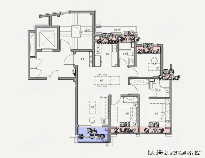 项目百平三房,在计算阳台一半面积+飘窗赠送面积的情况下,实得率可以达到91%左右,完美覆盖了当下普通高层的得房率痛点。