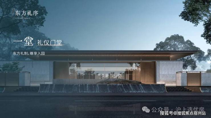 一园三堂的归家动线 ,象征着东方人文礼序。建筑风格造型,灵感源自金镶玉设计,提取其“曲”的形和白金配色应用到塔楼立面上,彰显项目的温和雅丽与尊贵典雅。