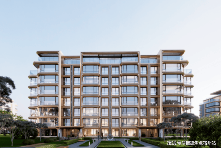 建筑外立面甄选天然石材、香槟金铝板与珐琅点缀,通过檐角、转角的流畅线条还原江水流动感,搭配大面积玻璃幕墙,既彰显海派建筑的优雅质感,又最大化引入江景与园景,打造极具辨识度的滨江建筑天际线。