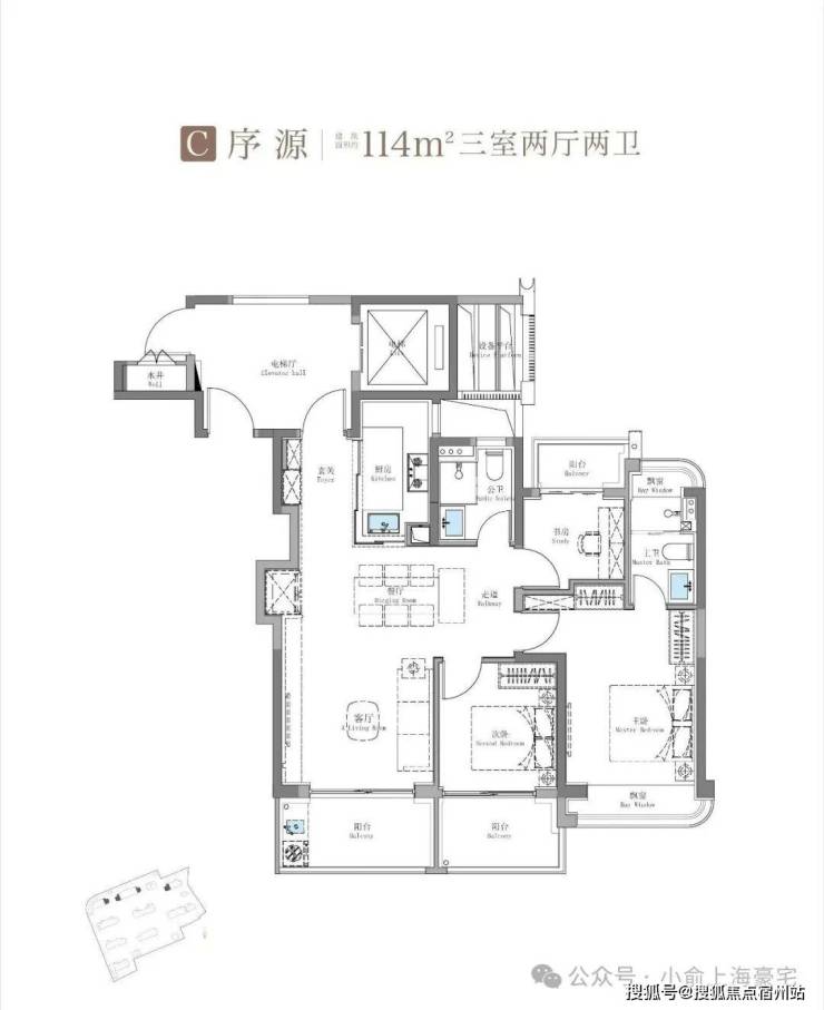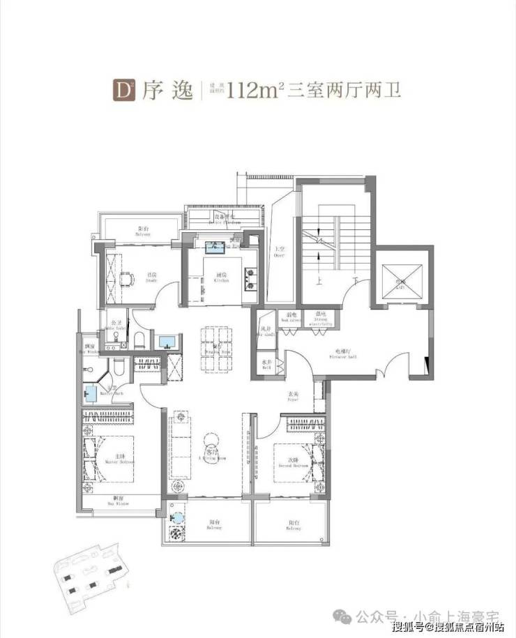 均价68375元/㎡其中建面约115㎡鲲鹏阁三房户型是上海此前未见的全新王炸级产品