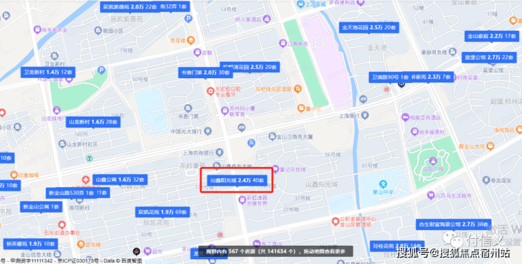 山鑫阳光城上海链家&贝壳网挂牌数量(40套)及均价(2.4万/平)