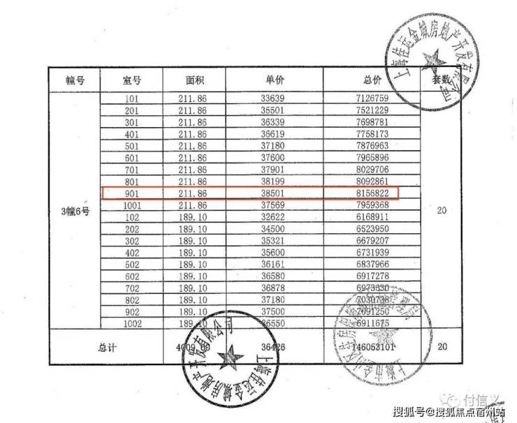 根据开发商公布的一房一价表,其中最贵的一套房子是3幢6号901(次顶楼),单价38501元/平,总价达到8156822元, 单价和总价均创金山平层住宅历史新高,这个价格完全可以在五大新城核心板块买个130平的四房了。