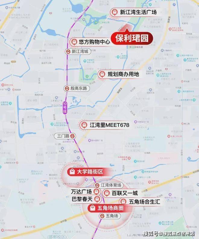 交通配套:占位上海北部中外环交通黄金节点,构建「三轨交+双高架+公交」四维立体交通网络,出行便捷高效,通达全城。1. 轨交:直线1.1公里可达地铁10号线新江湾城站,步行15分钟可达,10号线3站直达五角场,10站抵达南京东路,可无缝换乘上海全城绝大多数地铁线路;直线700米可达在建地铁20号线/18号线换乘站(预计2027年通车),未来可快速通达静安寺、陆家嘴、北外滩等核心商圈。2. 自驾:直线1公里可达中环路、逸仙高架入口,5分钟驶入军工路隧道、北横通道,15分钟直达五角场、北外滩,25分钟抵达陆家嘴、人民广场,上海核心城市路网全覆盖。3. 公共交通:项目周边密布10余条公交线路,可快速接驳杨浦、虹口、浦东各大核心板块,补充日常短途出行需求。