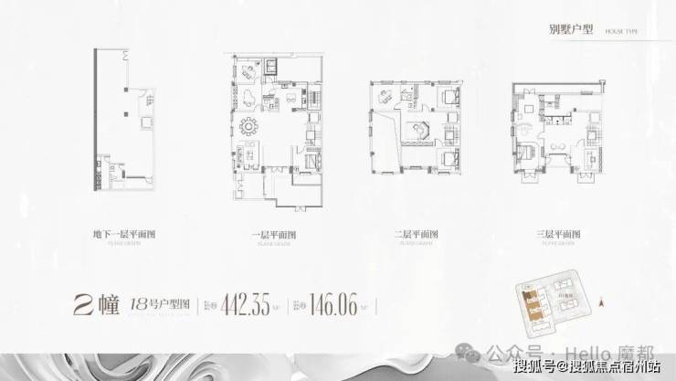C1、C2地块:约1.9万㎡的纯联排及独栋,共46套,套均面积412㎡;