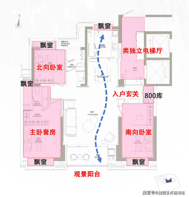 近全飘窗设计,扩展了生活的尺度感;主卧豪华套房设计,兼顾私密性与居住舒适度!