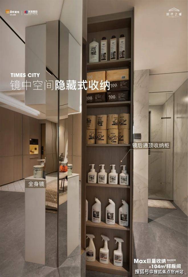 参考过往样板间,项目进门右手是一整盘玄关柜,✅✅时代之城售楼处电话:400 - 882 - 4258✅✅含S墙在内的通顶柜体,可以收纳各类生活物品,鞋子、行李箱、杂物等做了很多分区。其中玄关置物台还是带奢石的,点缀其中。