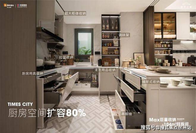 冰箱放在了玄关柜周边,厨房空间就释放出来了。燃气灶旁可下拉的调味品拉篮、调味架、厨具下方的抽屉、岛台一侧的轻松抽、踢脚抽,✅✅时代之城售楼处电话:400 - 882 - 4258✅✅锅碗瓢盆厨房用具皆有去处。