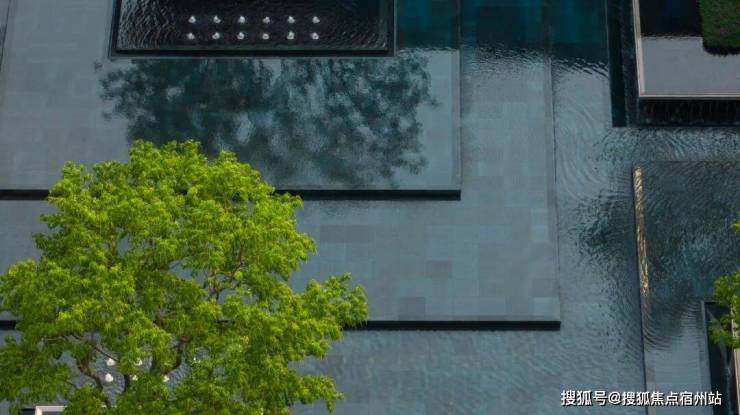 项目的核心是一个如绿翡翠般的环抱式水院空间,通过统一的设计语言及功能组合,围合出一个内向聚焦精致的静安之境。
