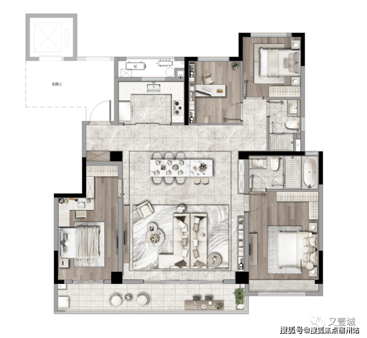 方厅、多车位、超级精装,这些大概率会延长生命周期的特质尽数出现在约160㎡户型里。