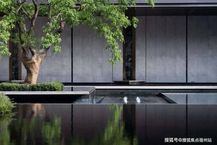 一缕细泉从绿宝石般的景墙中流入水台,耳畔传来潺潺的水声。树影跃动与水中倒影相谐,呈现另一个观赏自然的维度。