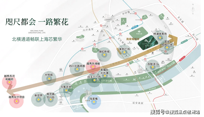 另一个方面,凭借着上海的东西向大动脉—北横通道,【翎翠滨江】在享受沿线一系列超级配套的同时,也将获得由这一主干道所带来的清晰上下游人口导入!
