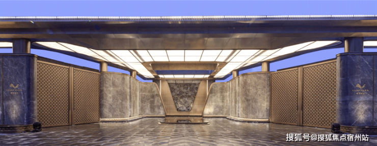 约100米的超级归家界面,用 蓝翡翠奢石 搭配 艺术雕塑 ,为业主营造更具仪式感和尊贵感的归家体验。