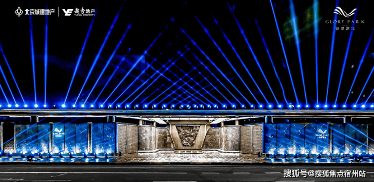 而在翎翠滨江,光门头就打造了一个 约100米的超级归家界面 ,用 蓝翡翠奢石 搭配 艺术雕塑 ,为业主营造更具仪式感和尊贵感的归家体验。