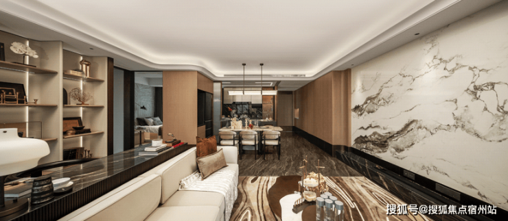 翎翠滨江通过大量的奢石、隐藏式细节将整个室内打造成了艺术的殿堂。
