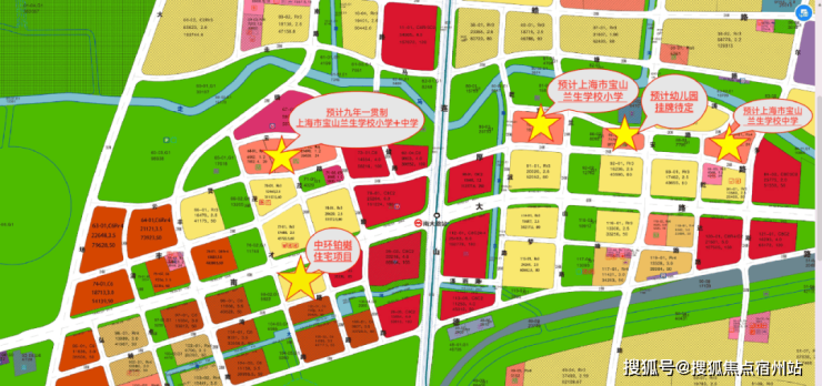 上海市宝山兰生中学为全新的九年一贯制公办学校(包括西校区小学部和东校区中学部,总用地面积约6万平方米、计容建筑面积约7.1万平方米,暂定小学部45个班、中学部58个班),据此看来东北及西北象限均纳入兰生学校。