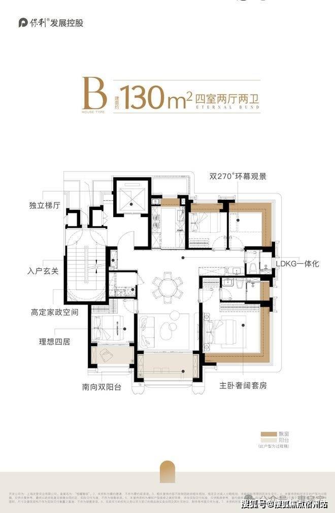 项目全系户型标配“全屋飘窗(全赠送)+双阳台(半赠送)+独立电梯厅”。