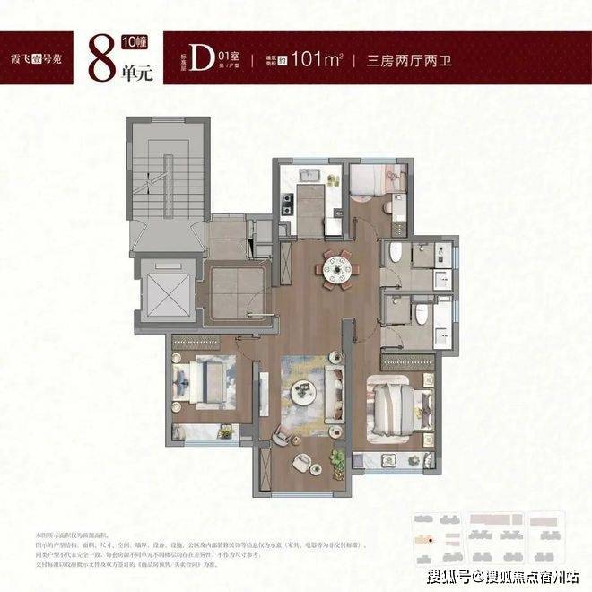 约 101㎡三房户型“独立电梯厅 + 专属玄关” 设计,拥有约 6㎡私属入户空间,可定制鞋帽柜、艺术品陈列区或临时社交角。