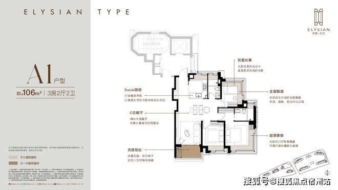 每个户型至少6个飘窗,边套更是约270°转角瞰景。