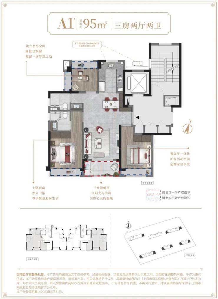 项目规划6栋总层高16层的可售住宅,共448套,主力户型是约95和116㎡,根据出让要求,中小套户型不得低于60%,项目需配建5%以上的保障性住房,全装修比例50%,容积率2.0,限高50米!☑️☑️建发联发青云上售楼处电话:400-1183-605☑️☑️