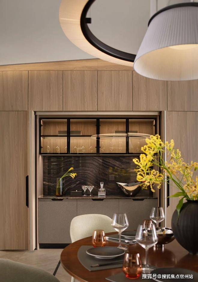 精心设计的灯光与水磨石地面,将功能性空间转化为具有五星级酒店仪式感的隐奢第一厅,让每一次回家都成为从喧嚣步入宁静的转换。