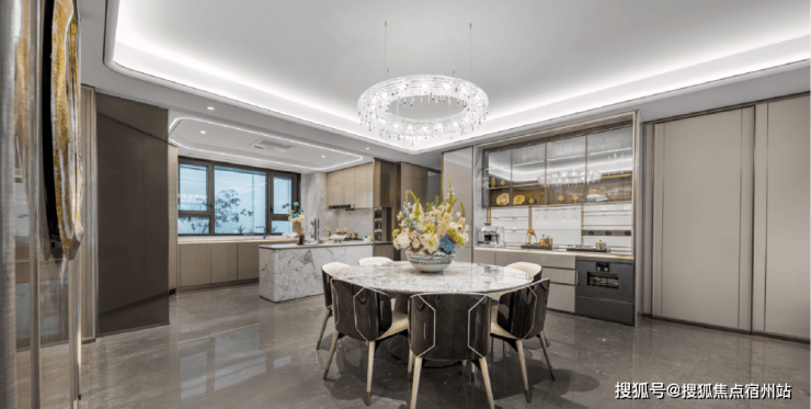 玄关、客餐联厅、厨房与阳台一体贯通,形成建面约100㎡社交巨厅,可容纳10人大圆桌,聚合社交、筵席、娱乐等多元场景,尽享欢宴与聚会。