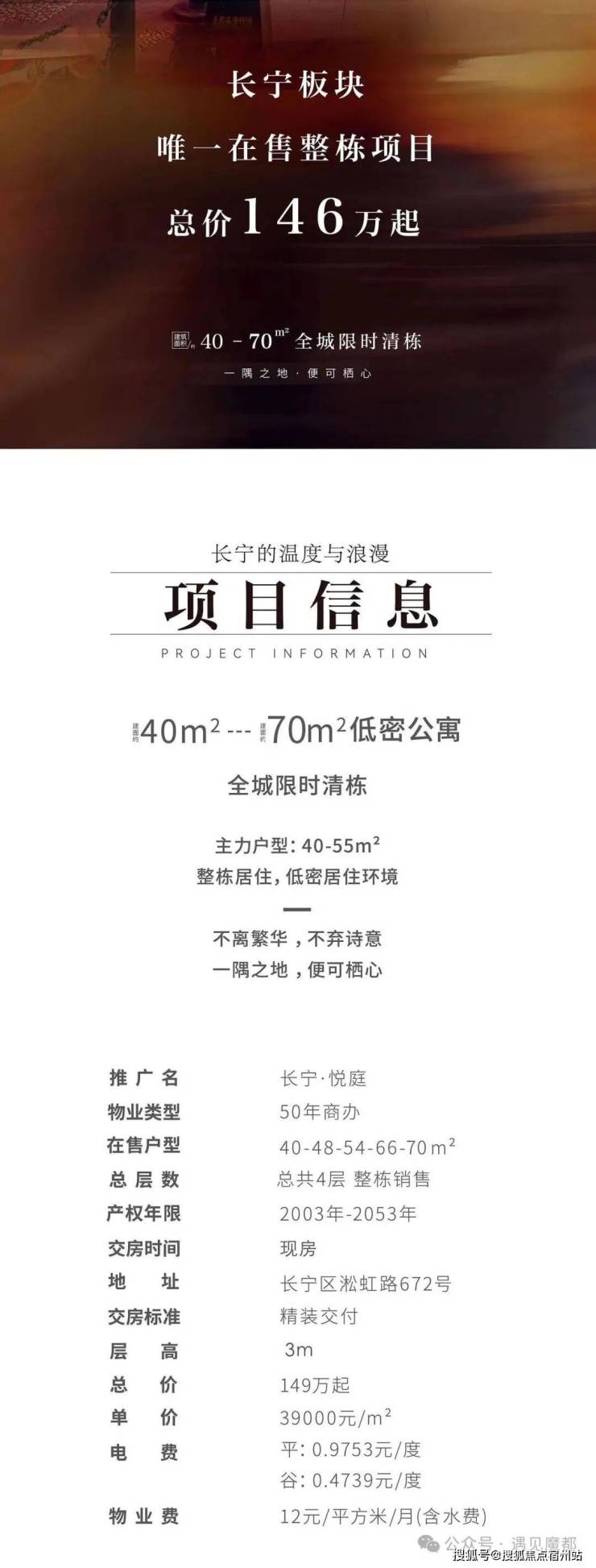 长宁唯一整栋纯居住!现房 2号线600米,5分钟悦见繁华【长宁悦庭】直接认购 建面约40-84㎡精装公寓 总价146万起!款清交房✅长宁悦庭售楼处电话:400-8854-706✅︎✅︎✅