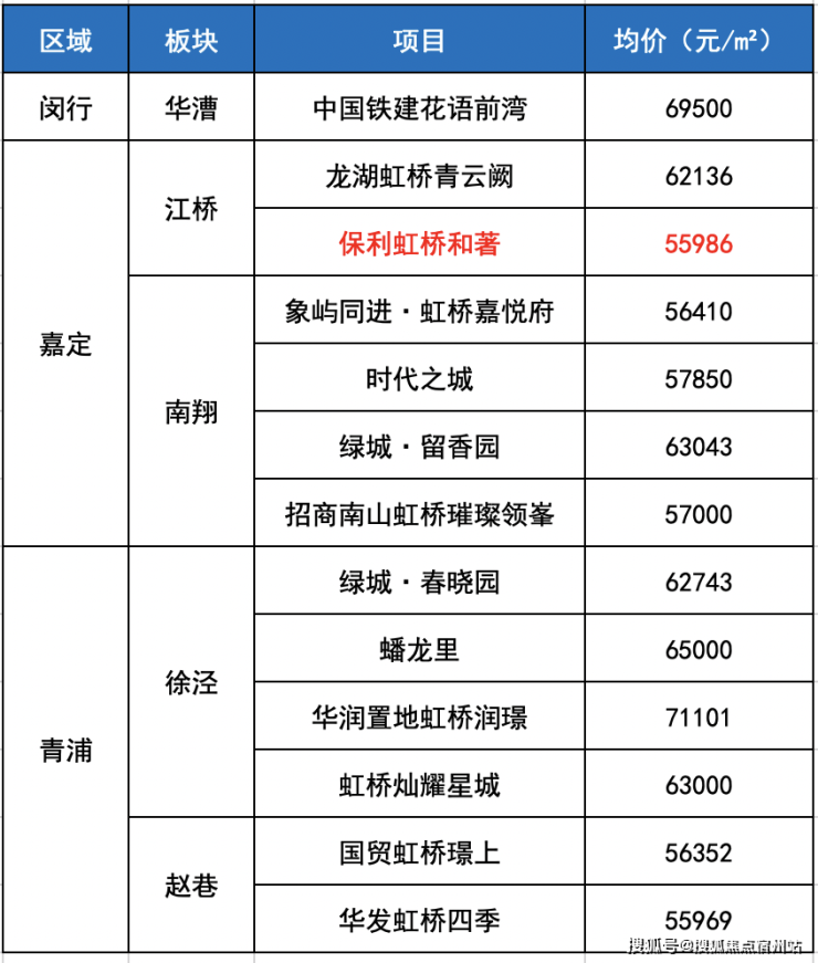 保利虹桥和著 均价 仅约55986元/㎡ ,堪称大虹桥板块最低价在售新房!与周边其他楼盘相比,价格优势十分明显。比如嘉定南翔的绿城·留香园 已高达63043元/m²;嘉定江桥龙湖虹桥青云阙也达到了62136元/m²。再看青浦徐泾的绿城·春晓园也达到了62743元/m²,蟠龙里更是高达65000元/m²。而闵行华漕的中国铁建花语前湾均价69500元/m²。