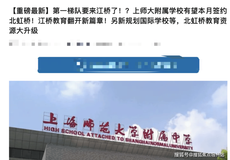 近日,嘉定江桥传出一个令人振奋的消息,上海第一梯队的 上师大附属学校 或将于本月与嘉定区和江桥相关部门正式签约, 入驻江桥北虹桥 地区,即上虹桥北虹之星。 (具体情况等官方消息)