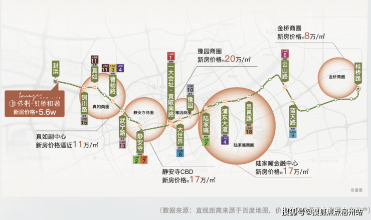 3)聚焦14号线沿线的新房价格 ,新天地约21万/㎡,静安寺约13.6万/㎡,南京西路约14.2万/㎡,陆家嘴约17万+/㎡,真如约10.9万+/㎡,而 保利虹桥和著 售价预计 仅约5字头,妥妥的地铁14号线沿线的价格洼地!