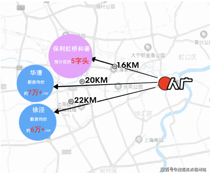 4)再看大虹桥区域内的价格梯队, 徐泾的新房均价已破约6万/㎡,花漕的新房房价也超过约7万/㎡,而 保利虹桥和著售价预预计仅约 5字头 ,拥有更大的价格优势。这样的价格潜力, 未来增值潜力巨大!