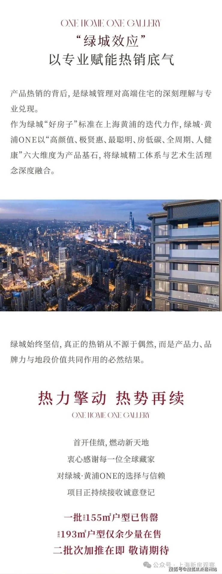 最新消息!老西门「绿城·黄浦ONE」首推建面约155㎡开盘售罄,193㎡4房少量在售!加推建面约155-193㎡3-4房;上期均价约17万/㎡!售楼处线上火热预约中!