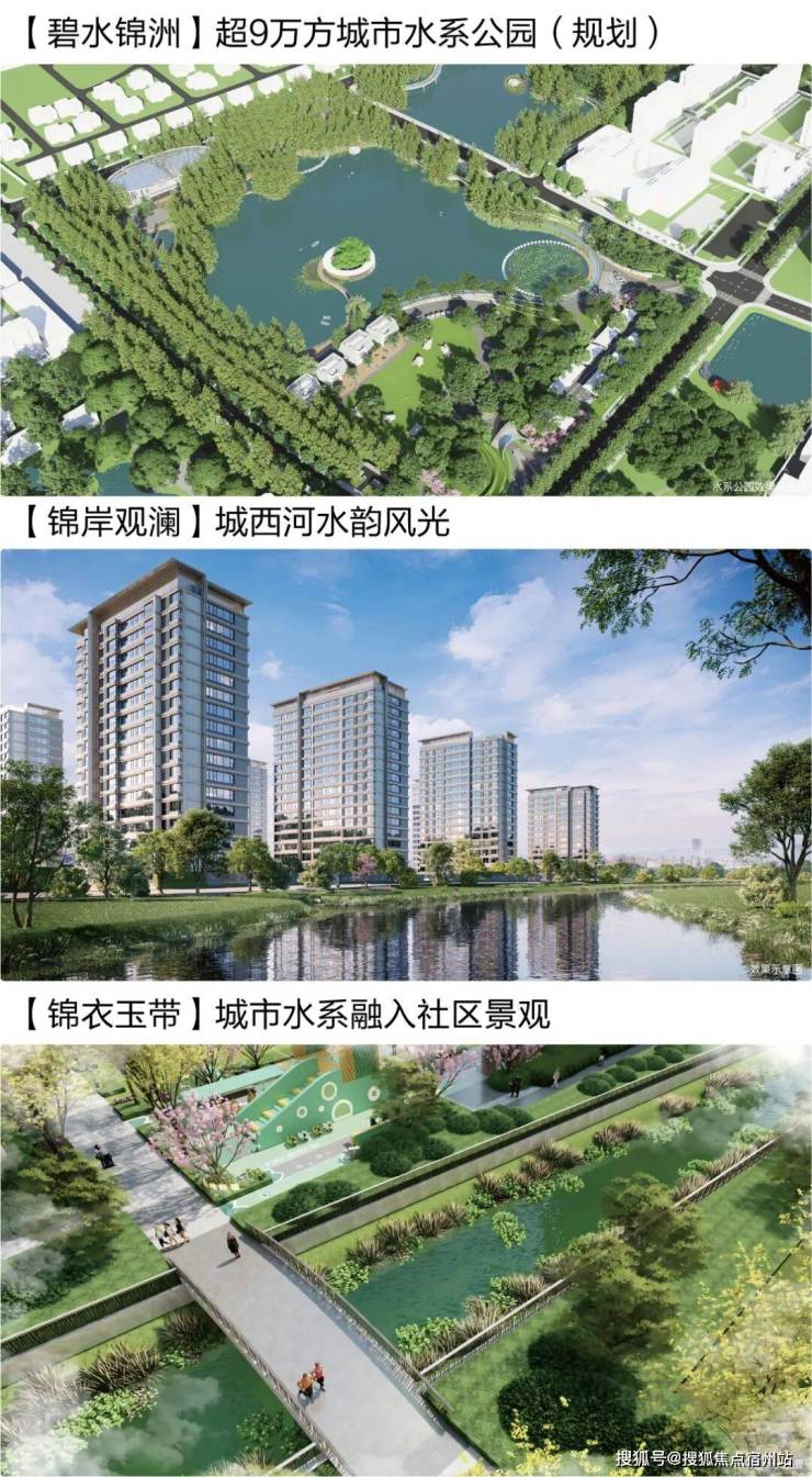 【三重水系】东侧近邻城西河,北侧紧邻绿地水系公园(斥资1.1亿打造),一条滨水东西向穿过社区。