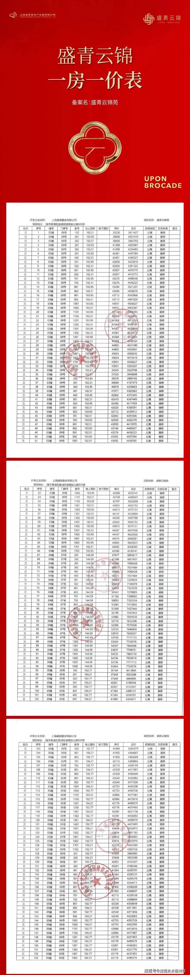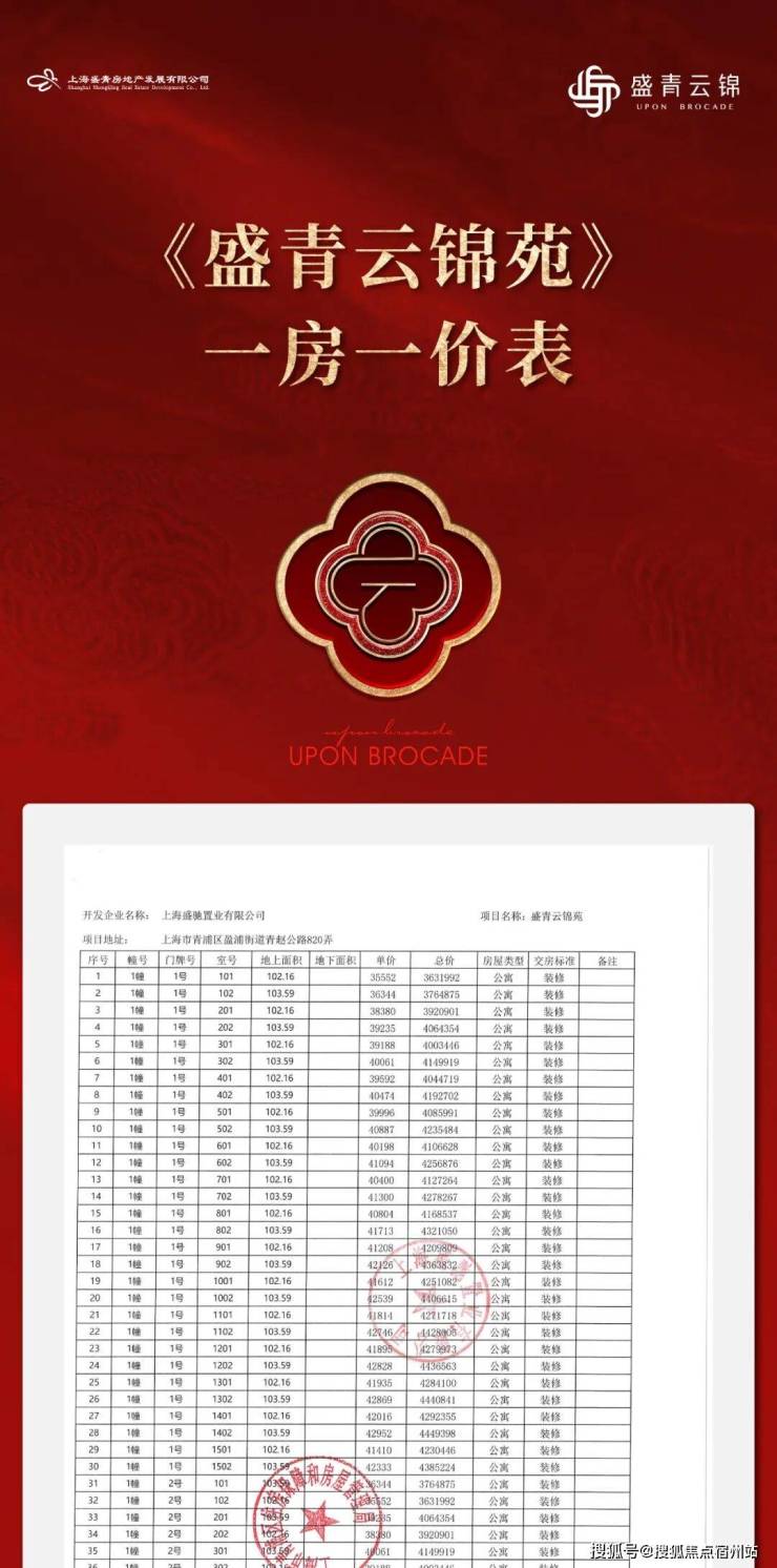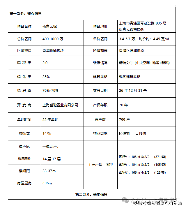 最新消息, 一房一价表发布!青浦新城「盛青云锦」明天认购!建面约103-145㎡三房四房,均价4.45万/㎡!