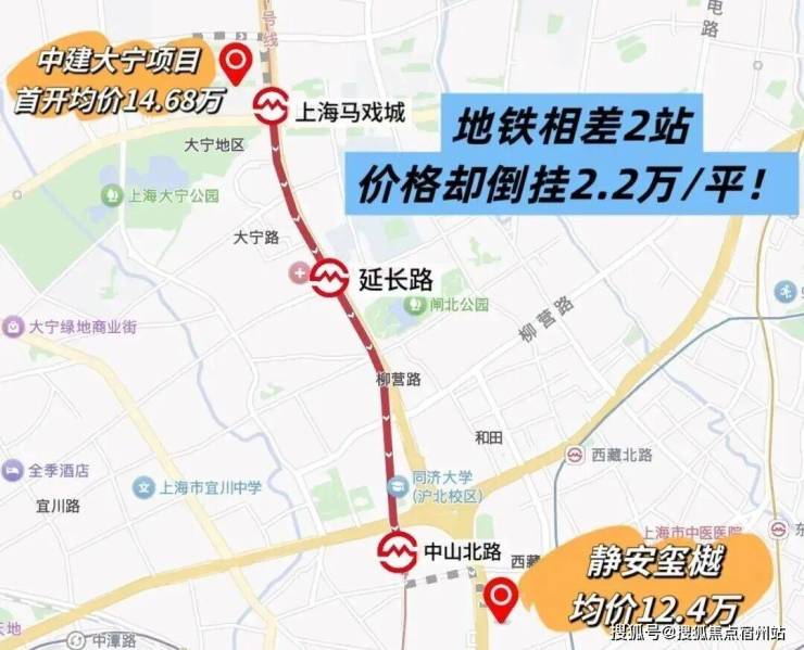仔细看就会发现,位于静安大宁的中建项目,首开均价是14.68万/㎡,而位于静安内环上游2站的静安玺樾,此次均价却只有12.4万/㎡,反而便宜约2.2万/㎡,已经形成了明显的地段与房价的倒挂!