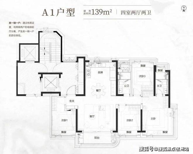 139㎡四房两厅两卫:均价约 6.6 万 /㎡,总价约 880-1038 万;四开间朝南,南向面宽约 15.05 米,独立电梯厅,主卧 270° 飘窗