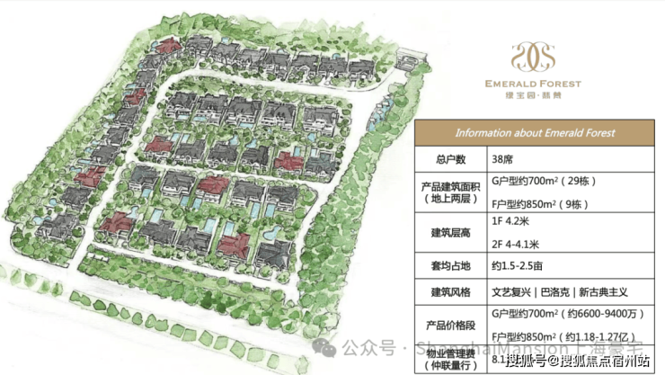 绿宝园·翡梵整体占地面积约6.6万方,由38栋建面约700-848㎡法式独栋庄园别墅组成,对应的是约1.5-2亩的占地面积,每个业主能享受超大花园带来的浪漫生活。